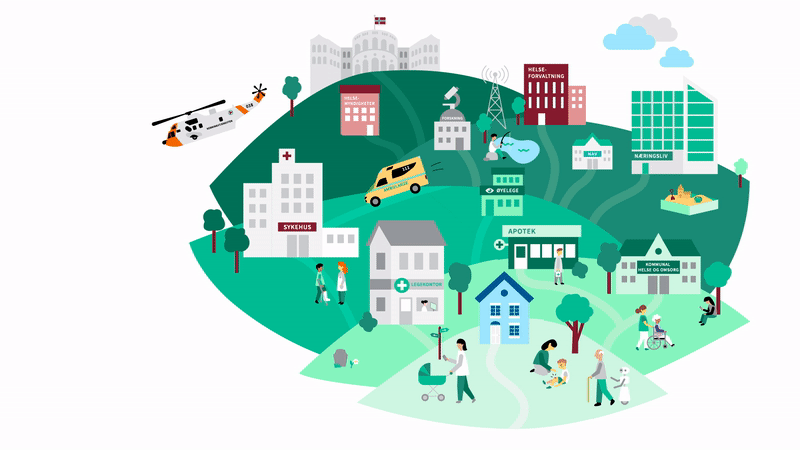 Illustrations made for Norsk helsenett (Norwegian Healthnet). The content belongs to Norsk helsenett.